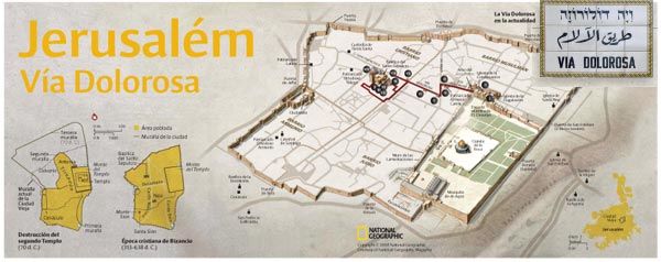 Segundo outros testemunhos posteriores, parece que se foi definindo pouco a pouco o caminho pelo qual Jesus tinha passado através das ruas de Jerusalém, ao mesmo tempo em que também se determinavam as Estações, quer dizer, os lugares onde os fiéis se detinham para contemplar cada um dos episódios da Paixão. Os Cruzados – nos séculos XI e XII – e os Franciscanos – a partir do século XIV – contribuíram em grande medida para fixar essas tradições. Deste modo, na Cidade Santa, durante o Século XVI já se seguia o mesmo itinerário que se percorre atualmente, conhecido como Via Dolorosa, com a divisão em catorze estações.
