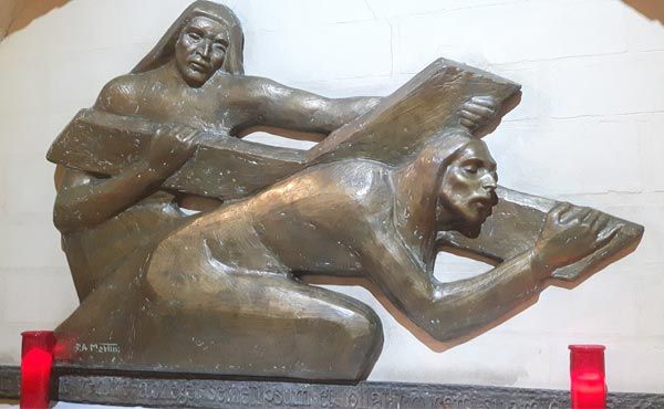 V estação. Simão Cireneu ajuda Jesus a levar a Cruz