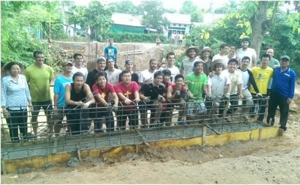 營期間我們住在當地一個村落的教堂,每日早上七點半,數十個熱心的教友騎著摩托車到村落的天主堂,將志工們載至工作地點,開始橋梁的建造。許多志工們皆讚嘆橋梁建造的藝術,了解一座橋梁的建造需要如此多的工作,從鋼筋的運輸、整材、切割、製作樑柱一直到灌溉水泥等步驟,無不是學問。有賴當地的技師有耐心的指導,大學生們得以學習並盡一分己力。除了橋梁的建造外,志工們也幫忙了村落教堂的整修、包括圍牆的修建、建築物的油漆粉刷等。