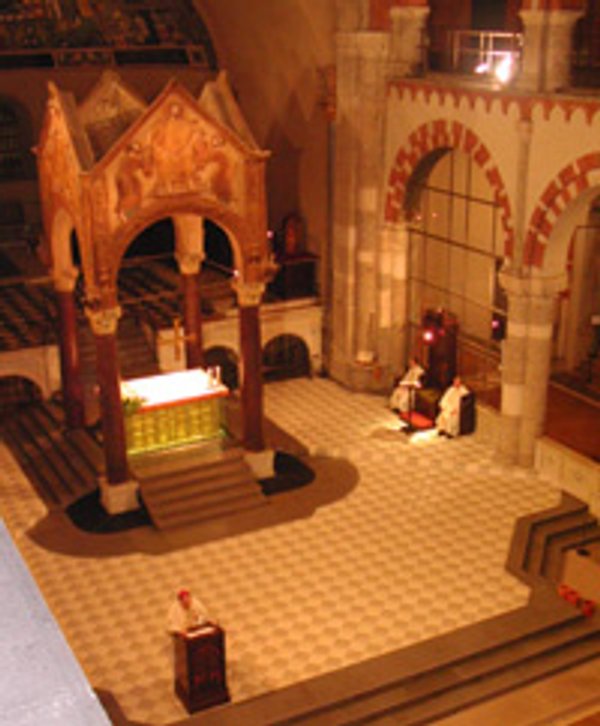 La maestosa Basilica di S. Ambrogio ha ospitato venerdì 17 gennaio i numerosi fedeli che hanno assistito alla S. Messa di ringraziamento per la canonizzazione di Josemaría Escrivá. La concelebrazione è stata presieduta dal vescovo mons. Erminio De Scalzi, abate della Basilica. Attorno al magnifico altare d’oro di Volvinio, gioiello dell’arte medievale, si sono stretti i 9 sacerdoti concelebranti, fra cui il Vicario Regionale dell’Opus Dei, mons. Lucio Norbedo.