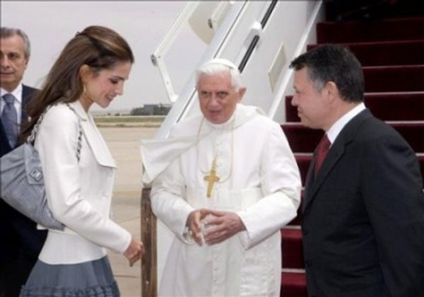 It is with joy that I greet all of you here present, as I begin my first visit to the Middle East since my election to the Apostolic See, and I am pleased to set foot upon the soil of the Hashemite Kingdom of Jordan, a land so rich in history, home to so many ancient civilizations, and deeply imbued with religious significance for Jews, Christians and Muslims. I thank His Majesty King Abdullah II for his kind words of welcome, and I offer my particular congratulations in this year that marks the tenth anniversary of his accession to the throne. In greeting His Majesty, I extend heartfelt good wishes to all members of the Royal Family and the Government, and to all the people of the Kingdom. I greet His Beatitude Fouad Twal and His Beatitude Theophilus III and also other Patriarchs and Bishops here present, especially those with pastoral responsibilities in Jordan. I look forward to celebrating the liturgy at Saint George’s Cathedral tomorrow evening and at the International Stadium on Sunday together with you, dear Bishops, and so many of the faithful entrusted to your care.