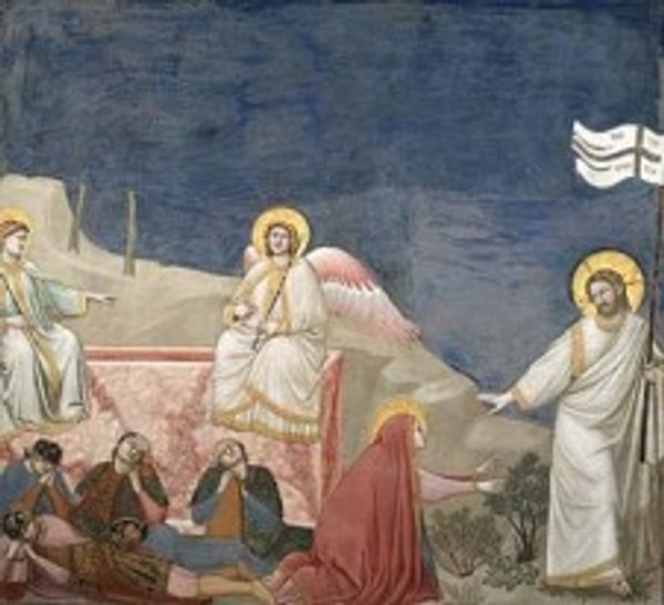 В първия ден на седмицата те идват при гробницата много рано — при изгрев слънце (Марк 16:2). Влизайки в гробницата, остават поразени, защото не намират тялото на Христос. Един юноша, облечен в бяла дреха, им казва: „Не бойте се; знам, че търсите разпнатия Исус;...” —„...non est hic, surrexit enim sicut dixit.” —„...няма го тук, Той възкръсна, както бе казал.” (Мат. 28:5).