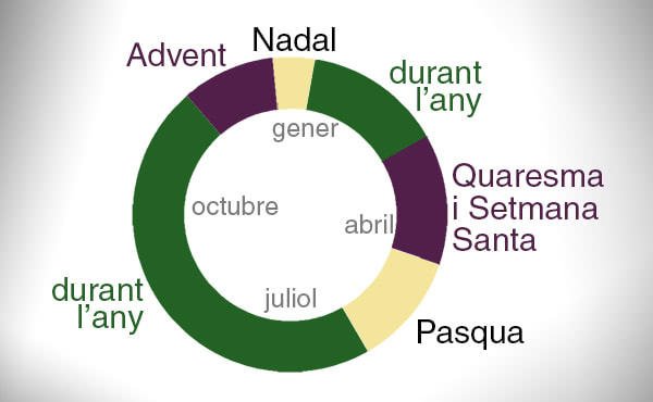 1.-L’any litúrgic s’inicia amb el temps d’Advent, que comença el diumenge següent a la festa de Crist Rei. L'Advent és un temps que dura quatre diumenges per preparar el naixement del fill de Déu.