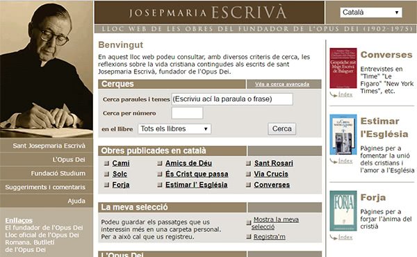 Coincidint amb Sant Jordi, les principals obres de Sant Josepmaria Escrivà de Balaguer són accessibles en català a Internet. L’adreça web és https://cat.escrivaworks.org. Aquest portal ofereix també, a banda dels llibres en la llengua original (castellà), versions en alemany, anglès, euskera, francès, holandès, italià, polonès, portuguès, rus i suec.