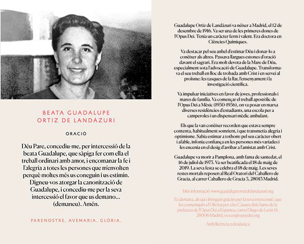Déu Pare, concediu-me per intercessió de la beata Guadalupe, que sàpiga fer com ella el treball ordinari amb amor, i encomanar la fe i l'alegria a totes les persones que m'envolten perquè moltes més us coneguin i us estimin. Digneu-vos atorgar la canonització de la beata Guadalupe, i concediu-me per la seva intercessió el favor que us demano... (demaneu). Amén.