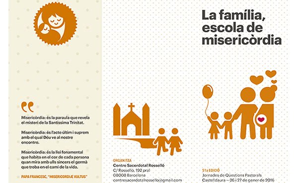 ![]() | Amb el lema "La família, escola de misericòrdia", el 26 i 27 de gener tindran lloc a Castelldaura (Premià de Dalt) les 51 Jornades de Qüestions Pastorals Dimarts 26 > 10.30 h Acreditacions > 11.00 h Pregària de tèrcia > 11.15 h "Família i misericòrdia", Gualtiero Bassetti, Cardenal Arquebisbe de Peruggia i vicepresident de la Conferència Episcopal Italiana > 12. 45 h Pausa > 13.00 h "Les mans d'una mare", Javier Cremades, Rector del santuari de Torreciutat Dimecres 27 > 10.30 h Pregària de tèrcia > 10.45 h "Francesc: Un Papa seduït per la misericòrdia", Sebastià Taltavull, Bisbe auxiliar de Barcelona > 11.45 h "El perdó com expressió de la misericòrdia", Joan Costa, professor de la Facultat de Teologia de Catalunya + Info: info.cat@infobcn.org Tel. 934 182 107 |