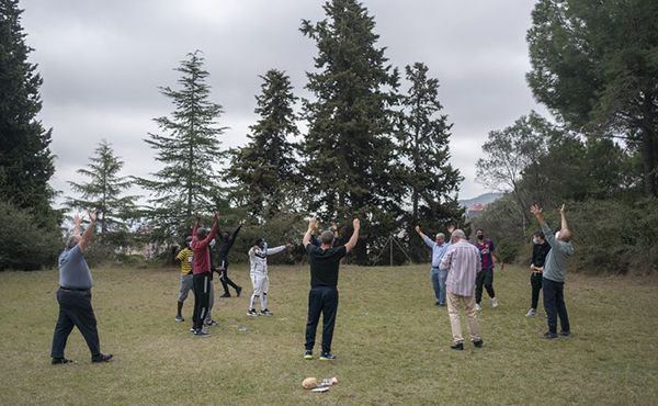 Avui no han vingut dones a la risoteràpia. «Aviat. Estem muntant un altre grup, perquè moltes de les dones que venen a T’Acompanyem no poden al matí perquè estan ocupades amb voluntariats», explica l’Isidro. ¿Qui ha dit que aturat significava quedar-se quiet? La sessió d’aquest dijous transcorre amb la mascareta posada. Fins i tot en això la pandèmia ha intentat posar barreres a les rialles, tot i que en aquest grup no ho hagi aconseguit.