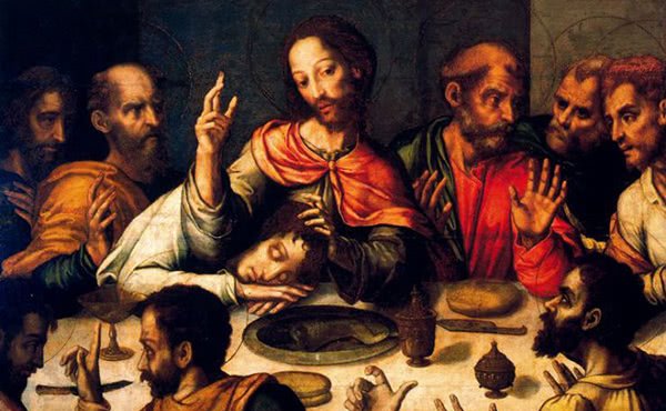 Segons el relat de sant Joan, al començament, en un gest carregat de significat, Jesús renta els peus als seus deixebles donant així exemple humil de servei (Jn 13,1-20). A continuació té lloc un dels episodis més dramàtics d'aquesta reunió: Jesús anuncia que un d'ells el va a trair, i ells es queden mirant-se els uns als altres amb estupor davant allò que Jesús està dient i Jesús d'una manera delicada assenyala Judes (Mt 26,20-25; Mc 14,17-21; Lc 22,21-23 i Jn 13,21-22).