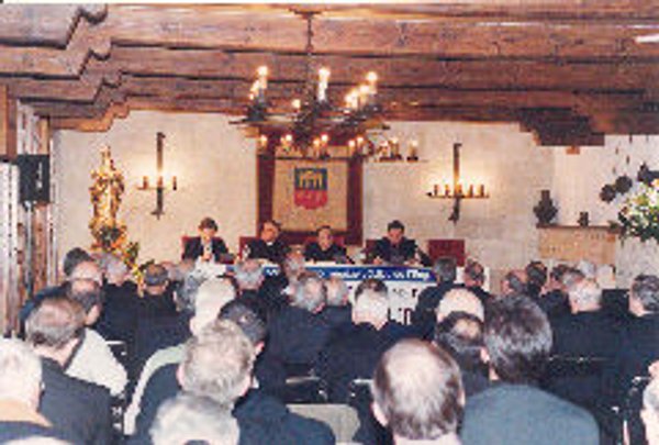 A la primera taula rodona, “25 anys de pontificat de Joan Pau II: un exemple de comunicació”, van participar el P. Ciro Benedittini, sots-director de la Sala de Premsa de la Santa Seu, juntament amb el Sr. Juan Lara, corresponsal de l’Agència EFE al Vaticà, i Mn. Ramon Octavi Sánchez, Director de Catalunya Cristiana i de Ràdio Estel.