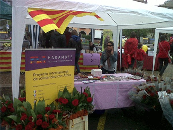 Harambee va col·locar un estand a la Plaça Catalunya de Girona, al costat de les concorregudes Rambles de la ciutat, localitzacions on se situen la majoria de llocs de llibres i roses.