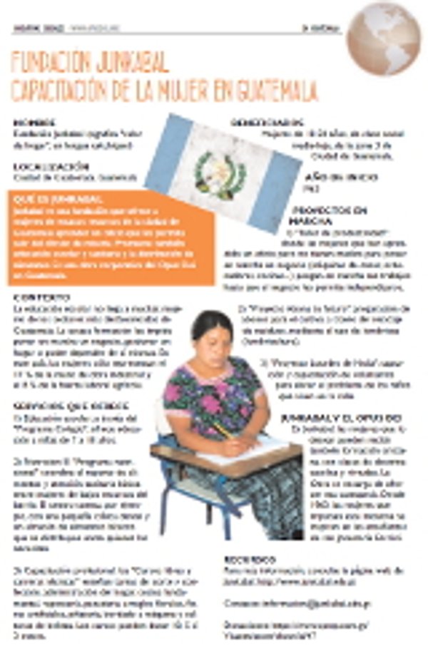 Junkabal és una fundació que ofereix a dones d'escassos recursos de la ciutat de Guatemala aprendre un ofici que els permeti sortir del cercle de misèria. Promou també l’educació escolar i sanitària i la distribució d'aliments. És una obra corporativa de l'Opus Dei a Guatemala.CONTEXT