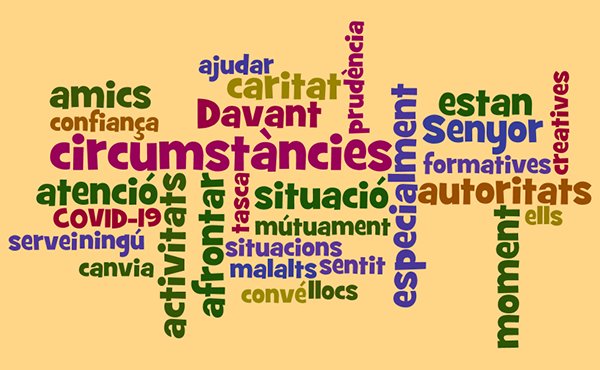 El COVID-19 ha provocat que, en alguns llocs, s’hagi arribat a una situació d’emergència, que canvia el ritme habitual de vida i influeix en l’estat anímic general. És bo recordar que el Senyor ens dona la seva gràcia per santificar-nos també en aquestes circumstàncies d’incertesa. Ajudem-nos mútuament a afrontar aquestes situacions, vivint al dia, conscients que quan estem obligats a reduir la nostra tasca externa ens trobem davant d’una oportunitat de créixer per dintre.