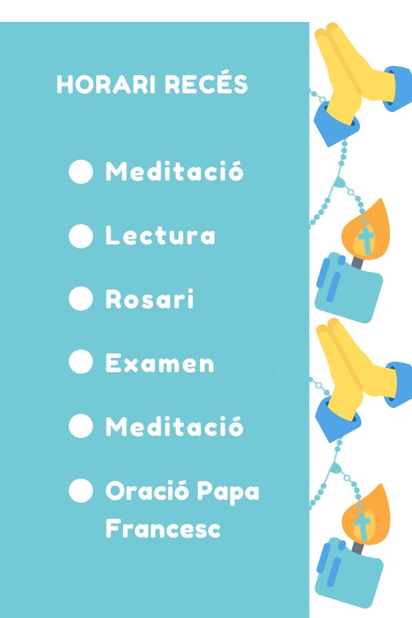 3. «És estreta la porta i dur el camí que condueix a la vida, i són pocs els qui el troben» (Mt 7, 14). Sóc realista en la lluita cristiana, sabent que és una tasca dura i alhora assequible, perquè vaig sempre agafat de la mà de Déu? Em proposo un punt de lluita cada setmana?