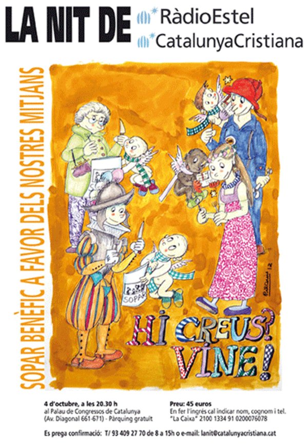 El setmanari Catalunya Cristiana i l’emissora Ràdio Estel organitzen un sopar el dijous 4 d’octubre, a les 20.30 h, al Palau de Congressos de Catalunya.