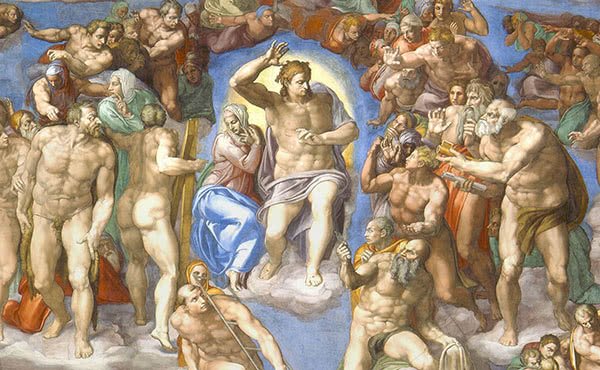 En la representació del Judici Final de la Capella Sixtina, obra mestra de Miquel Àngel, veiem Crist al centre, que sembla governar l’univers amb un moviment de braç. Al seu costat hi ha santa Maria, que mira amb pietat els seus fills mentre es presenten davant del jutge suprem. Entorn d’aquestes dues figures es disposa una multitud de personatges: sants de l’Antic i del Nou Testament, màrtirs i apòstols, que contemplen el Salvador.