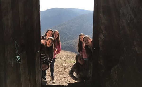 En acabar ens dirigim a Peramola, veiem el paller des de fora i llegim el fragment de Entre la noche y la esperanza que explica el que va passar allà. Continuem fins a la Cova del Corb. Hem arribat! Allà mengem i vam jugar una estona.