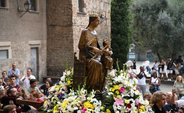 La imatge actual és una talla de fusta d'estil gòtic del segle XIV, atribuïda a Pere Moragues, amb un infant Jesús a la falda, d'un o dos segles després. Des del 1637 és copatrona de la ciutat de Barcelona, per un vot que va fer el Consell de Cent si alliberava la ciutat d'una plaga de llagostes, i patrona de la diòcesi de Barcelona. Durant l'Exposició Universal de Barcelona (1888) fou coronada canònicament com a patrona de la diòcesi.