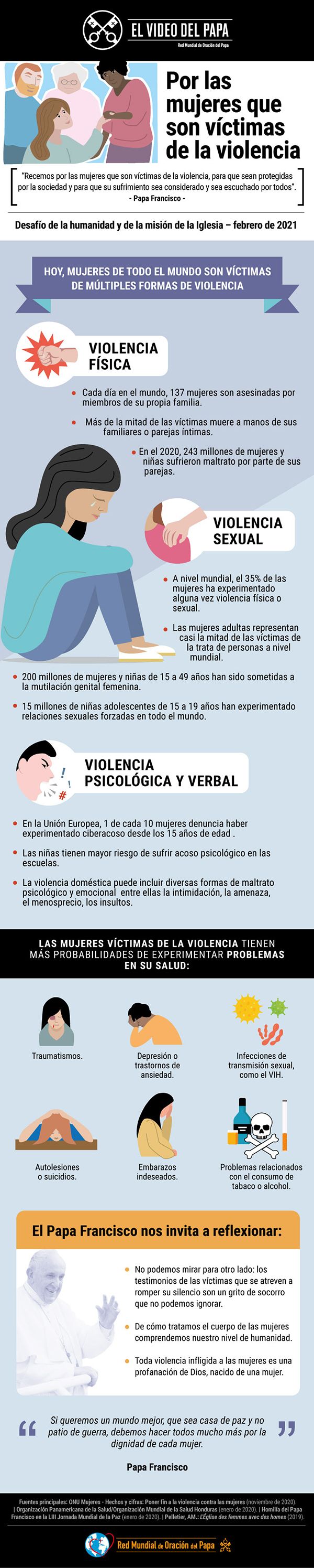 Preguem per les dones que són víctimes de la violència, perquè siguin protegides per la societat i perquè el seu patiment sigui considerat i sigui escoltat per tots.