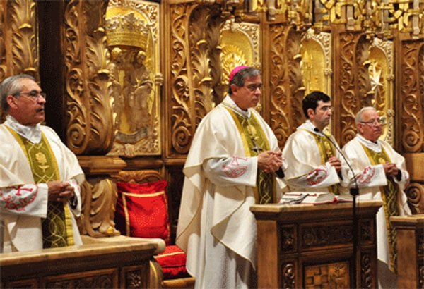 A les 13'15 h ha començat la concelebració eucarística, presidida pel P. Josep Maria Soler i solemnitzada per la Coral d’Escolans d'Olesa de Montserrat. En acabar la Missa han actuat també altres agrupacions corals catalanes: Coral Tívoli (Vilafranca del Penedès), Coral Sant Jordi (Sant Pere de Riudebitlles), Coral Montserrat (Sant Sadurni d'Anoia), Coral Amistat (Sant Boi de Llobregat) i Coral Aigües Tosses (Sant Andreu de la Barca).
