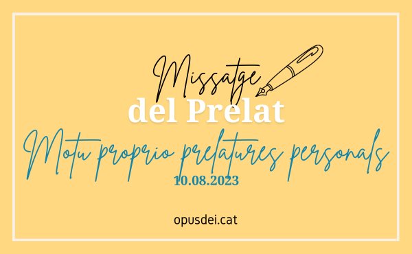 D'altra banda, i com és lògic, el Motu proprio del dia 8 d'agost també caldrà comptar-hi en l'adaptació i l'actualització dels estatuts de l'Obra, que està en marxa des de fa un any. Per aquest motiu, renovo ara la petició d'oracions que ja us vaig adreçar fa alguns mesos, perquè aquesta feina arribi a bon port. A més, desitjaria que dia a dia es reforci en nosaltres, per la gràcia de Déu, sentir-nos fills de l'Església, germans i germanes d'una família unida, que procuren encarnar a la seva vida el missatge rebut per sant Josepmaria. Siguem apòstols que sembren magnànimament comprensió i caritat, amb la joia que dona l'encontre amb el Senyor.