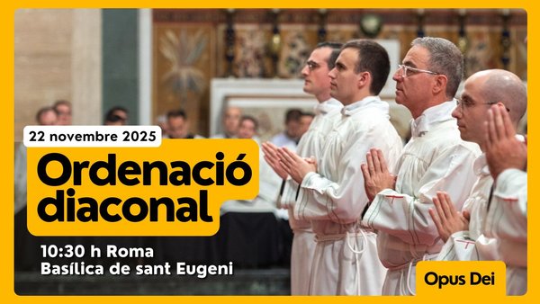 Et convidem a unir-te a la pregària i acció de gràcies per aquests nous diaques, a seguir la transmissió en directe des de la basílica de Sant Eugeni i a descarregar el fullet de la cerimònia.