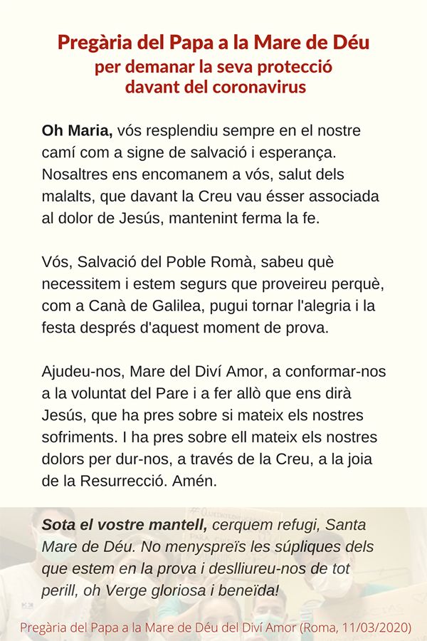 5. Davant les dificultats, miro de recordar amb sant Pau que «Déu ho disposa tot en bé dels qui l'estimen» (Rm 8, 28)? ¿En quins aspectes podria créixer la meva seguretat que Déu treu béns fins i tot de les circumstàncies més difícils o negatives?
