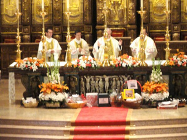 Després de la processó els pelegrins van fer una ofrena de variats productes catalans i van assistir a l'eucaristia, que va ser concelebrada per Mn. Jaume Berdoy juntament amb Mn. Vicenç Guinot, de la parròquia sant Joan Baptista de Sant Joan Despí, Mn. Xavier Argelich i Mn. Enric Ramírez, d'Igualada. Els cants litúrgics van anar a càrrec de l'Agrupació de Corals de diferents municipis d'aquestes comarques que dirigeix Francesc Gil.