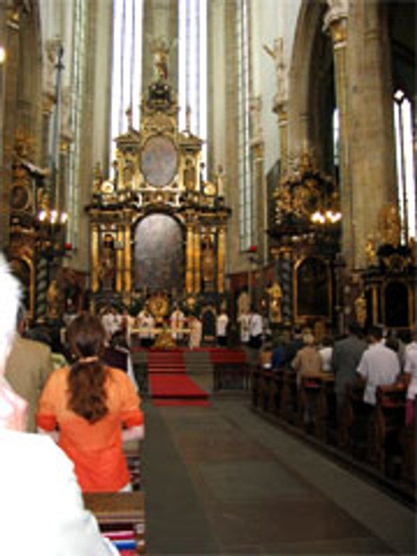 Už před 17-tou hodinou začali první zájemci o svátost smíření přicházet ke zpovědnici. Přibližně o čtvrt hodiny později se věřící začali společně modlit růženec. Před osmnáctou hodinou bylo v chrámu shromážděno téměř tři sta věřících. Na mši svatou přišlo mnoho mladých lidí, včetně rodin s dětmi, ale také přátelé a známí Prelatury. Mezi nimi například Don Pedro Vidal, velvyslanec Uruguaye v České republice, p. Josef Miškovský, předseda Pozemkového fondu, attaché velvyslance Chile, a další.