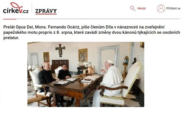 „Píši tato slova, abych se s vámi podělil o to, že s upřímnou synovskou poslušností přijímáme tyto dispozice Svatého otce, a abych vás požádal, abychom i v tomto zůstali všichni velmi jednotní“. Takto se prelát Opus Dei, Mons. Fernando Ocáriz, obrací na věřící prelatury v poselství vydaném ve čtvrtek 10. srpna, dva dny po zveřejnění papežova motu proprio, které obsahuje úpravy dvou kánonů týkajících se osobních prelatur.
