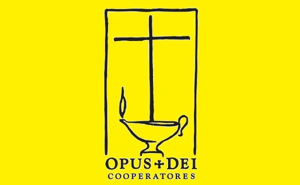 Nápis pod ním zní: OPUS DEI. Pod tímto textem je napsáno: Spolupracovníci a spolupracovníce.
