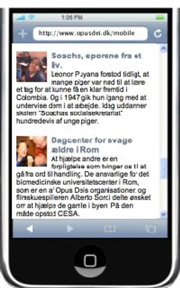 Mange personer, især unge, har i nogen tid bedt om at få webstedet disponibelt til mobiltelefoner og til elektroniske lommebøger. Mobilversionen produceres dynamisk og indeholder nogle af de mest læste sektioner fra Opus Deis website. Addressen man skal bruge for at komme ind på mobiludgaven er: https://opusdei.org/ eller https://opusdei.org/mobile