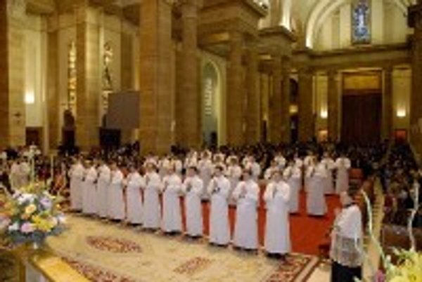 ”Lad os på en særlig måde bede for disse vore brødre – foreslog Prælaten – for at de må blive tro tjenere i genløsningens mysterium, hvilket de i dag er kaldet til med en ny titel og med et nyt ansvar. Vi må sætte os for, at vor bøn omfatter alle kirkens tjenere, lige fra Paven til den allersidst ordinerede diakon, biskopperne og præsterne i hele verden.”