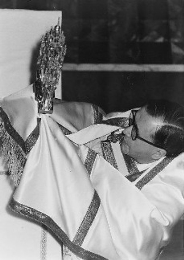 Die Fronleichnamsprozession macht Christus in den Dörfern und Städten der Welt gegenwärtig. Aber diese Gegenwart, ich wiederhole es, darf nicht nur Sache eines Tages sein, ein Ereignis, das man sieht und dann vergißt. Christus, der vorübergeht, prägt uns ein, daß wir Ihn auch in unserer täglichen Arbeit finden müssen. So muß der feierliche Gang dieses Donnerstags aufgehen in dem stillen und schlichten Gang eines jeden Christen durch sein alltägliches Leben: als Mensch unter Menschen, aber mit der Freude des empfangenen Glaubens und gemäß der göttlichen Sendung so zu leben, daß die Botschaft des Herrn auf Erden erneuert wird. Es fehlt nicht an Fehlern, Armseligkeiten und Sünden in unserem Leben. Aber Gott ist mit uns, und wir müssen uns Ihm bereitwillig zur Verfügung stellen, dann wird sein Vorübergang an den Geschöpfen nie mehr enden.