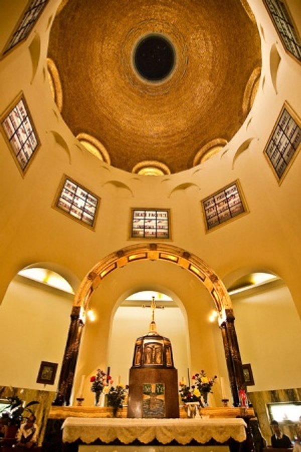 Aufgrund dieser Tradition wurde 1937/1938 das jetzige Heiligtum der Seligpreisungen erbaut. Man wollte es an einem Ort errichten, der den Blick auf das Panorama des Sees Genezareth freigab und wählte deshalb eine höher gelegene Stelle, die etwa 200 m über der Meeresoberfläche liegt und etwa 2 km vom ursprünglichen Ort entfernt ist.