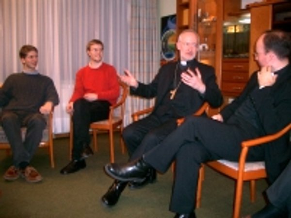 Auch die Studenten berichteten Scharl von ihren Erfahrungen an der Universität. „Manche Menschen scheinen zunächst überhaupt kein Interesse am Glauben zu haben“, erzählte ein junger Betriebswirt im dritten Semester. „Aber wenn man etwas länger ‚kratzt’, kommen tiefere, religiöse Fragen zum Vorschein.“ Die Clubarbeit kam ebenfalls zur Sprache. Das positive Interesse der Eltern, die Erziehung der Kinder durch die Teilnahme an Clubaktivitäten zu ergänzen, wurde angesprochen. „Die Erziehung in der Familie ist sehr wichtig“, betonte Scharl. Gleichzeitig forderte er von den Jugendlichen: „Gebt nie einen Menschen auf! Zur Umkehr ist es nie zu spät. Selbst nach dem Tod sollen wir nicht aufhören für das Seelenheil eines Menschen zu beten.“