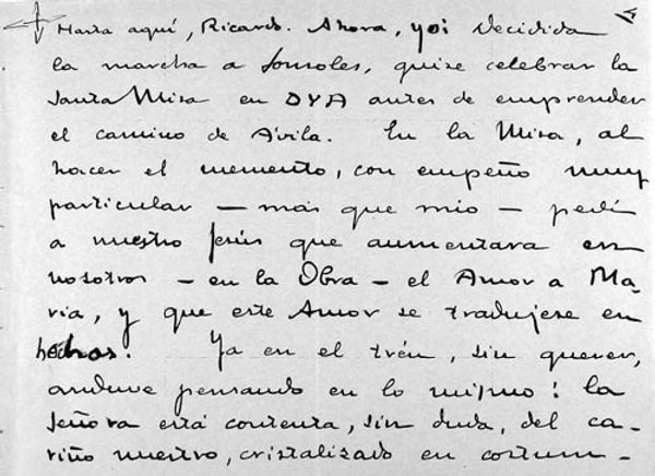 Ein weiterer Artikel dieser Abteilung ist ein Bericht vom Mai 1935, an dem der hl. Josefmaria mit zwei Mitgliedern des Opus Dei eine Wallfahrt zum Marienheiligtum von Sonsoles in Avila machte; anhand dieses Dokumentes lassen sich der innere Weg des hl. Josefmaria und das geistliche Leben der Mitlieder des Opus Dei, besonders hinsichtlich seiner marianischen Prägung, nachvollziehen. Präsentation und Kommentare kommen von Alfredo Méndiz.