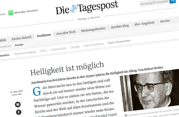 Heiligkeit ist nichts Abgehobenes, etwas, das ein paar besonders eifrigen Spezialisten vorbehalten ist, sondern, wie Papst Franziskus es in seinem jüngsten Schreiben Gaudete et exsulate treffend formuliert: Der Heilige ist der „Heilige von nebenan“. Der heilige Josefmaria hatte in den 1930er Jahren bereits davon gesprochen, dass Heiligkeit im Alltag für jede und jeden möglich ist. Nach langem Suchen und Beten hatte der damals 26-jährige Priester am 2. Oktober 1928 in einem mystischen Erlebnis die Sendung erhalten, die allgemeine Berufung zur Heiligkeit zu verbreiten, eine Botschaft, die, wie er sagte, wie das Evangelium „alt und neu“ zugleich war. Denn so sehr das Evangelium unmissverständliche Aufrufe zur Heiligkeit enthält, und so sehr den ersten Christen noch klar war, dass sie als Bürger ihres Landes in ihrem Beruf und Stand Licht und Sauerteig sein sollten, so sehr war dieses Selbstverständnis über die Jahrhunderte aus dem Bewusstsein und der Praxis der Gesellschaft entschwunden.