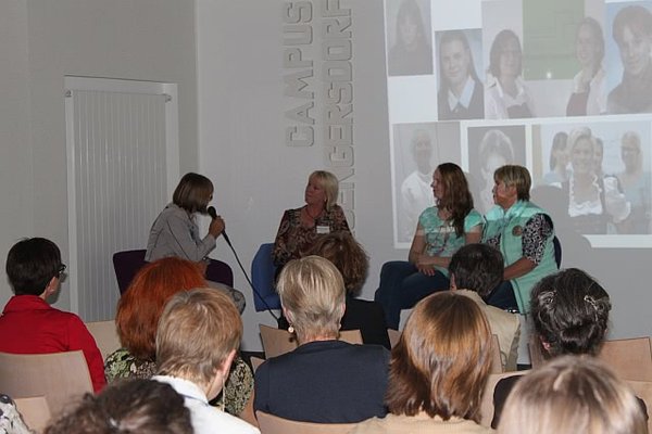 Nach dem Mittagessen und einem nostalgischen Filmrückblick über die vergangen 50 Jahre leitete die ehemalige Studiendirektorin Doris Schwager-Brotcheck die Gesprächsrunde mit ehemaligen Auszubildenden und betonte wie wichtig es sei, die Hauswirtschaft der Zeit anzupassen und offen für Veränderungen zu sein. Dabei lobte sie das DMC für seine Offenheit und Flexibilität, die sie als Berufsschulleiterin bei den Azubis vom DMC immer festgestellten konnte.