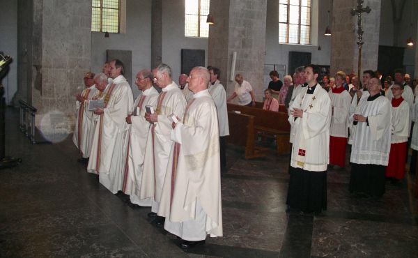 „Wir begegnen in Christus einer Person, die unserem Leben einen neuen Horizont gibt“, sagte Pfarrer Norbert Abeler in seiner Predigt vor etwa 100 Gläubigen in der Münsteraner Hl. Kreuz-Kirche. „Wir erfahren in jeder heiligen Messe, dass Christus sich uns hingibt. Und das erfordert eine Antwort. Denn dies bedeutet: Da ist eine Person, die mich so sehr liebt!" Im normalen Alltag könnten wir Christus auf seine Liebe Antwort geben, etwa indem wir unsere Arbeit mit Blick auf ihn machen, aus Liebe. So werde aus dieser Arbeit Gebet.