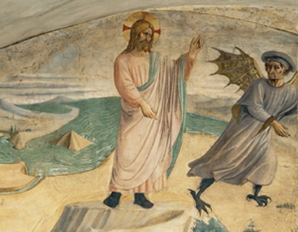 Jesus Christus wird versucht. Die Überlieferung erhellt diese Szene mit der Überlegung, daß der Herr, um uns in allem Beispiel zu sein, auch die Versuchung auf sich nehmen wollte. So ist es, denn Christus war in allem Mensch wie wir, die Sünde ausgenommen. Nach vierzigtägigem Fasten, währenddessen er nur Kräuter, Wurzeln und etwas Wasser zu sich genommen hatte, so dürfen wir uns das wohl vorstellen, verspürt Jesus Hunger, wirklichen Hunger wie jedes andere Geschöpf. Und als der Teufel ihm vorschlägt, Steine in Brot zu verwandeln, weist unser Herr nicht nur die Nahrung zurück, nach der sein Leib verlangt, sondern widersetzt sich einer viel größeren Versuchung: sich der göttlichen Macht zu bedienen, um sozusagen ein persönliches Problem zu lösen.