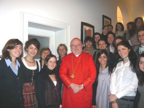 An den Gottesdienst schloss sich ein Gespräch in familiärer Atmosphäre an. Der Kardinal ermutigte die Studentinnen, aus der Orientierung des Glaubens zu leben. Es sei eine wichtige Aufgabe auch des Opus Dei, "Menschen stark zu machen, mit den Schwierigkeiten des Lebens aus einer katholischen Weltsicht heraus gut zurecht zu kommen." Eine Theologiestudentin, siebtes Semester, berichtete, dass sie schon seit mehreren Jahren in Aurach einen Grundkurs für nichtkatholische Studentinnen anbiete. Das Interesse sei groß. "In unserem Haus wird der Glaube face to face weitergegeben", so die Leiterin des Studentwohnheims Dr. Barbara Dohr.