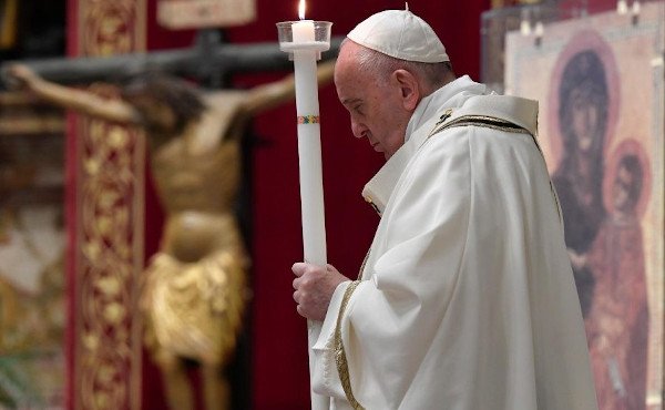 Heute Nacht erlangen wir ein Grundrecht, das uns nicht genommen werden wird: das Recht auf Hoffnung. Es ist eine neue, lebendige Hoffnung, die von Gott kommt. Sie ist nicht bloßer Optimismus, sie ist nicht ein Schulterklopfen oder eine freundliche Ermutigung, mit einem flüchtigen Lächeln. Nein. Sie ist eine Gabe des Himmels, die wir uns nicht selbst besorgen konnten. Alles wird gut, so sagen wir beharrlich in diesen Tagen und klammern uns dabei an die Schönheit unserer Menschlichkeit und lassen vom Herzen Worte der Ermutigung aufsteigen. Aber mit dem Verstreichen der Tage und der Zunahme der Ängste kann selbst die kühnste Hoffnung sich verflüchtigen. Die Hoffnung Jesu ist anders. Sie legt die Gewissheit ins Herz, dass Gott alles zum Guten zu wenden vermag, da er sogar aus dem Grab das Leben hervorgehen lässt.