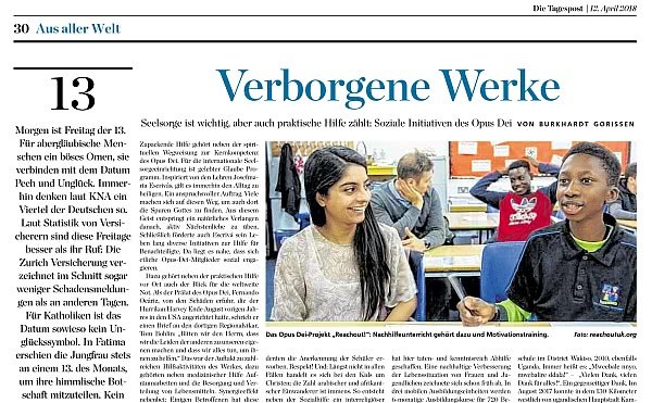 Die Tagespost aus Würzburg hat in ihrer aktuellen Ausgabe (12.4.2018, S. 30) einen Bericht über Sozialwerke in den USA, England und Deutschland veröffentlicht, die von Mitgliedern oder Mitarbeitern der Prälatur Opus Dei ins Leben gerufen worden sind.