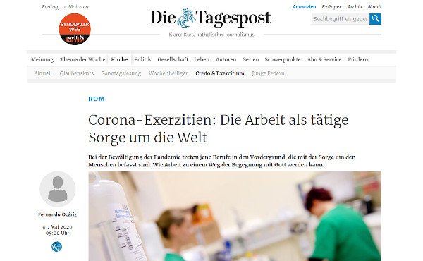 Bei der Bewältigung der Pandemie treten jene Berufe in den Vordergrund, die mit der Sorge um den Menschen befasst sind. Worte, die mit „Sorge“ in Zusammenhang stehen, füllen derzeit die Titelseiten: begleiten, miteinander weinen, beschützen, zuhören… Dieser Umstand verweist uns auf den Sinn und die Auswirkungen jeder Arbeit. Wir verstehen irgendwie besser, dass das Dienen die Seele der Gesellschaft ist, dass erst der Dienst der Arbeit Sinn gibt.