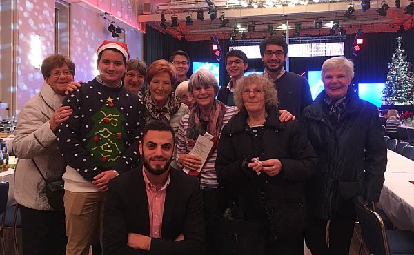 Ein festliches Weihnachtsessen an einer der feinsten Adressen der Stadt - das hat die REWE Group am 16. Dezember etwa 900 bedürftigen Menschen im Kölner Gürzenich ermöglicht. Als Helfer mit dabei: 12 Studenten des Studentenzentrums Schweidt in Köln-Ehrenfeld. Dessen Leiter, Joaquin García, kommentiert: „Schweidt lädt jedes Jahr Familien und Freunde des Hauses zu einem festlichen Nachmittag im Advent mit Show-Einlagen der Studenten und großartigem Kuchen-Buffet ein. Das wollten wir in diesem Jahr auch Bedürftigen ermöglichen.“ Auf der Suche nach Teilnehmern kam eine Zusammenarbeit mit der Caritas Ehrenfeld zustande, die vorschlug, statt einer eigenen Veranstaltung bei der Weihnachtsaktion der REWE Group mitzuhelfen. Dort sollten die Studenten älteren Menschen beim Abendessen Gesellschaft leisten und für kleine Dienste bereitstehen. Zusammen mit der Arbeiter-Wohlfahrt, der Caritas, der Kölner Tafel und weiteren Wohlfahrtsverbänden wurde der 16. Dezember bei einem Treffen vorbereitet. Dann war es soweit: Der große Saal des Gürzenichs strahlte. Elegant vorbereitete Tische und eine tolle Bühnenshow wurden den 900 bedürftigen Menschen geboten. Mit ihren Eintrittskarten und voller Vorfreude warteten sie bis zum Einlass. Ab 16:30 Uhr führte TV-Moderator Aljosha Höhn durch das bunte Rahmenprogramm. Die Show präsentieren Künstler wie die beiden Tänzerinnen und Akrobatinnen „Aerial Phyllis und Nantia“, der Kölner Sänger Stephan Runge gemeinsam mit dem Kinderchor „Lucky Kids“, der Sänger Laxmi Easwaran sowie „Pas de deux Olena und Michal“ – ein abwechslungsreicher Mix aus Musik und Artistik. Für Kinder gab es eigens eine Spiel- und Bastelecke. Zum Ausklang des Abends erhielten die Gäste eine weihnachtliche Geschenktüte mit Leckereien sowie Einkaufsgutscheinen.