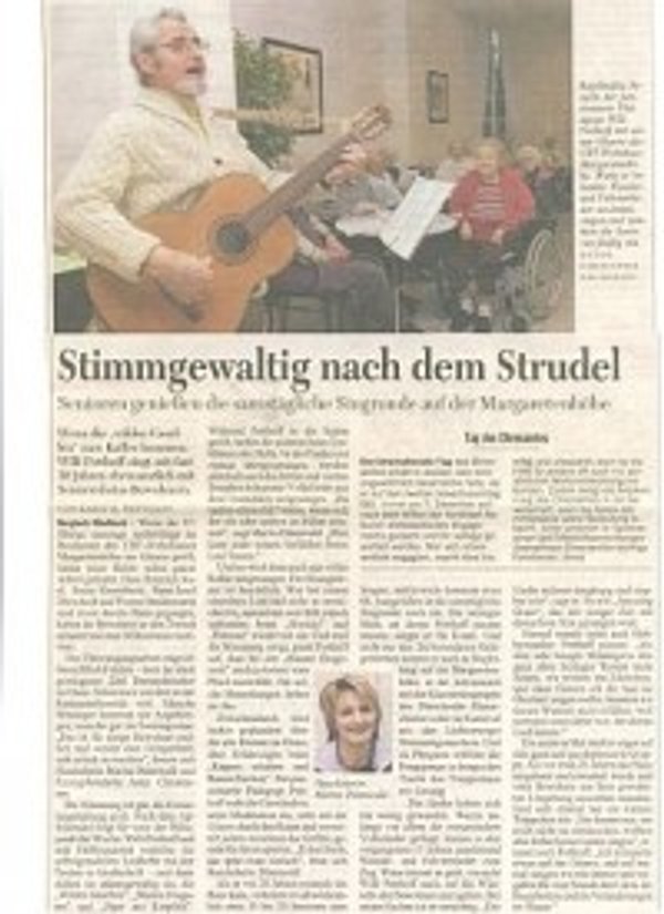 Die Überzeugungsarbeit trägt offensichtlich Früchte – trotz der stark gestiegenen Zahl Demenzkranker im Haus. Schon kurz vor drei ist der Restaurantbereich voll. Manche Mitsänger kommen mit Angehörigen, manche gar im Sonntagsstaat. „Das ist für einige Bewohner endlich mal wieder eine Gelegenheit, sich schick zu machen“, freuen sich Hausleiterin Marita Dünnwald und Einzugsberaterin Antje Christensen.