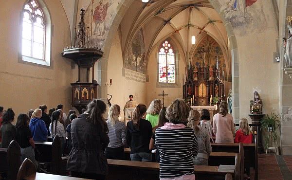 Das Pfingstzeltlager an der Dornburg hat schon eine lange Tradition. Versorgt werden alle Teilnehmer von einem festen Gebäude aus. Besonders beliebt ist der Schlafplatz mit Lagerfeuer am Waldesrand, in dem die zehn- bis 14jährigen im Freien übernachten und ihren Treffpunkt für Spiele haben. Dort bieten die Jugendgruppenleiter im Alter von 16 bis 18 Jahren auch Gespräche über den Glauben an, die meist in Form eines Zeugnisses stattfinden. Ein Älterer erläutert, warum er betet und welche Erfahrungen er dabei gemacht hat. Ein anderer gibt zu verstehen, woran er eigentlich glaubt, wenn er die Hl. Messe besucht und wie er sich auf einen solchen Besuch vorbereitet oder was er dabei eigentlich macht. Die jungen Leute hören gerne zu, fragen nach und werden gelegentlich auch von dem ein oder anderen Beispiel begeistert. Besonders spannend sind freilich die Gespräche, wenn sie über Verhalten in Schule, gegenüber Mitschülern, am Essenstisch oder in der Kirche gehen. Die Serie dieser Gespräche wird auch im nächsten Jahr auf der Dornburg fortgesetzt. Da es nicht immer um den Glauben geht, aber doch sehr oft, sind es inzwischen „Katechismus, Zeugnisse oder andere spannende Themen“.