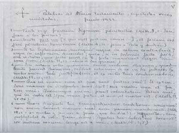 In der ersten Nummer von Studia et Documenta – der Jahresschrift des Dokumentationszentrums Heiliger Josefmaria Escrivá – ist ein Artikel von Francisco Varo erschienen über acht vom heiligen Josefmaria handgeschriebene Blätter im Format DIN A 6, die mit der Überschrift beginnen "Häufig betrachtete Worte aus dem Neuen Testament – 1933".