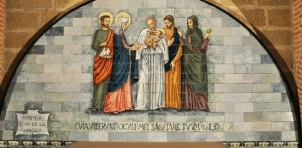 Ein gerechter und gottesfürchtiger Mann ist auf Eingebung des Heiligen Geistes in den Tempel gekommen. Ihm war geoffenbart worden, er werde den Tod nicht schauen, bevor er Christus gesehen habe. Er nimmt den Messias in seine Arme und spricht: Nun lässest Du, Herr, Deinen Knecht nach Deinem Wort in Frieden scheiden... denn meine Augen haben den Heiland geschaut (Lk 2,25-30).