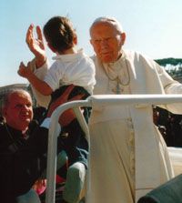 „Nein wir saßen mit dem Kind, das damals 15 Monate alt war, ziemlich weit weg vom Weg, den das Fahrzeug nahm. Jemand sagte, daß der Papst noch ein Kind küssen wollte. In unserer Zone war Benedetta das einzige. Man entriß sie uns förmlich und reichte sie weiter, bis sie zum Papst kam. Auf dem Rückweg spielten alle mit dem Mädchen, so daß sie recht lange brauchte, bis wir sie wiederhatten. Und das, wo es uns so viel gekostet hatte, sie zu bekommen! Wir waren überglücklich.“